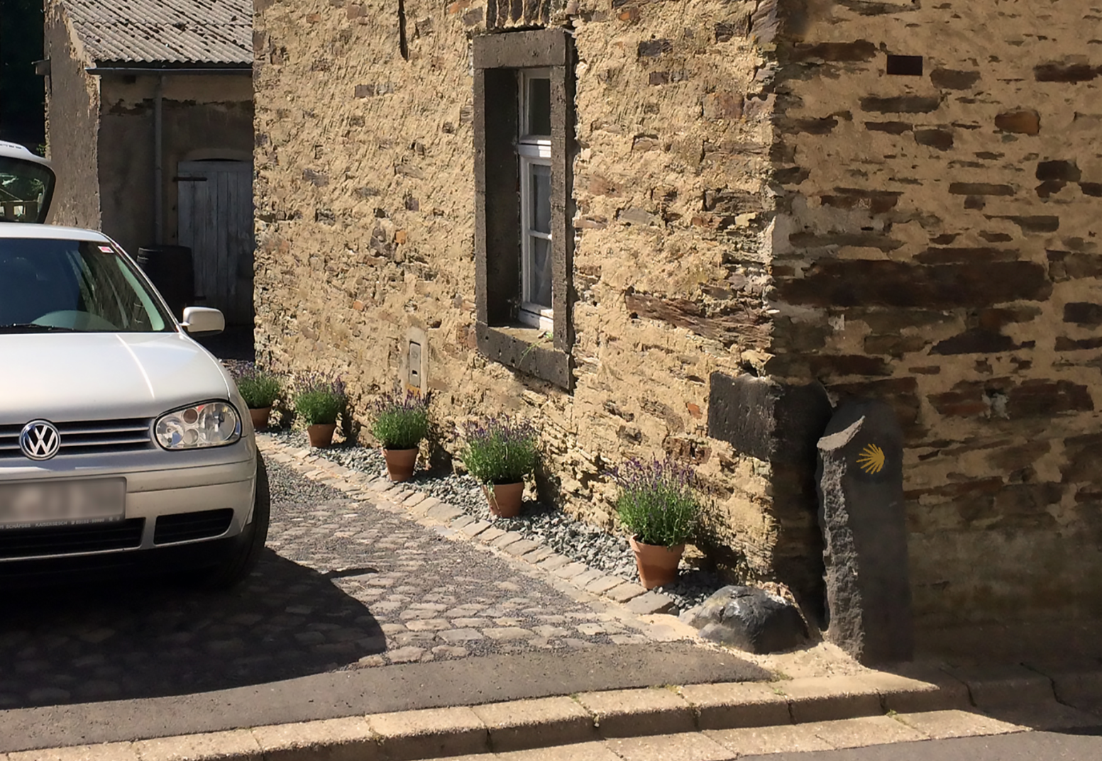 Wie Sie auf dem Bild unten sehen können, liegt unser Ferienhaus direkt am Jakobsweg Eifel - Camino.