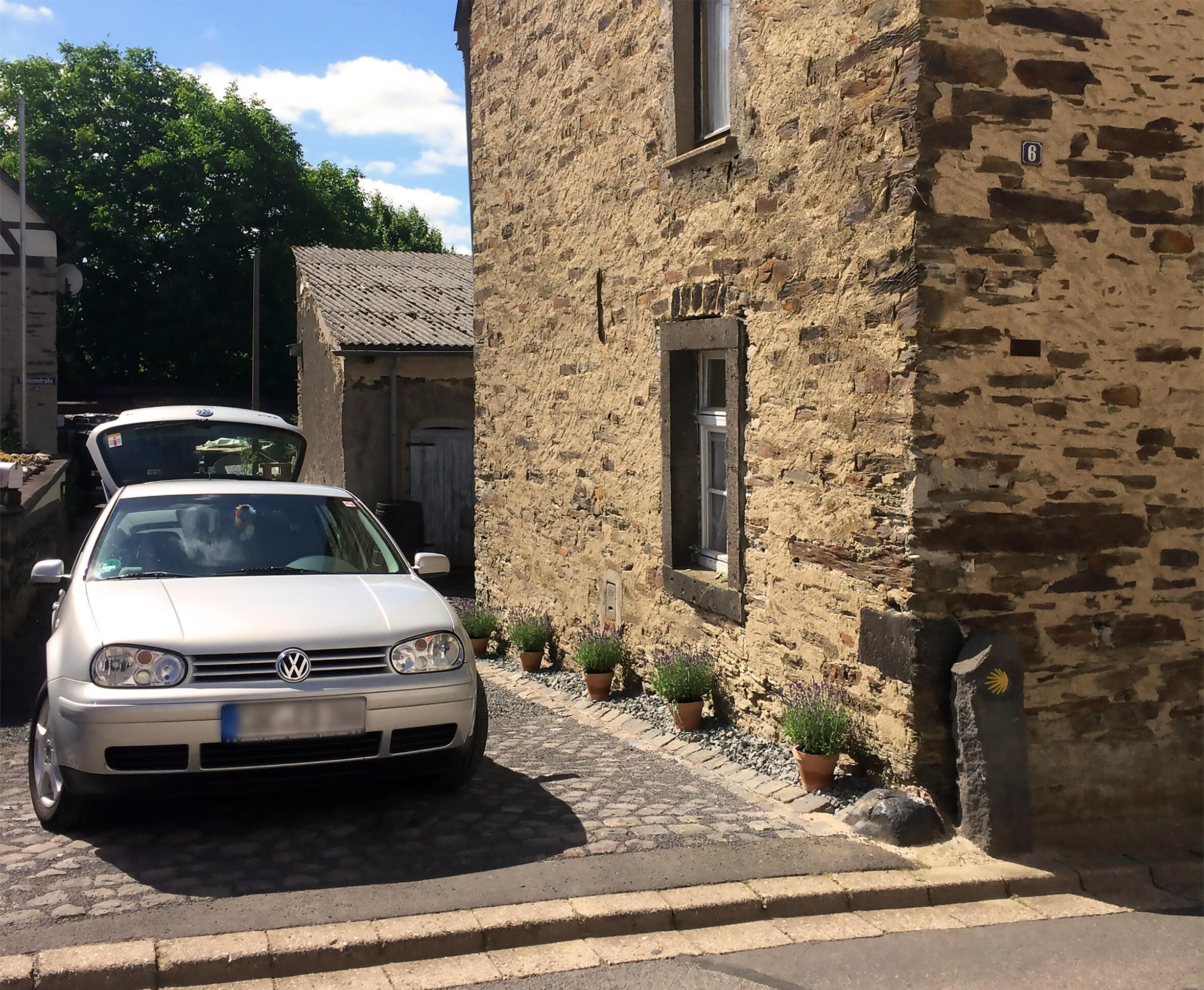 Wie Sie auf dem Bild unten sehen können, liegt unser Ferienhaus direkt am Jakobsweg Eifel - Camino.