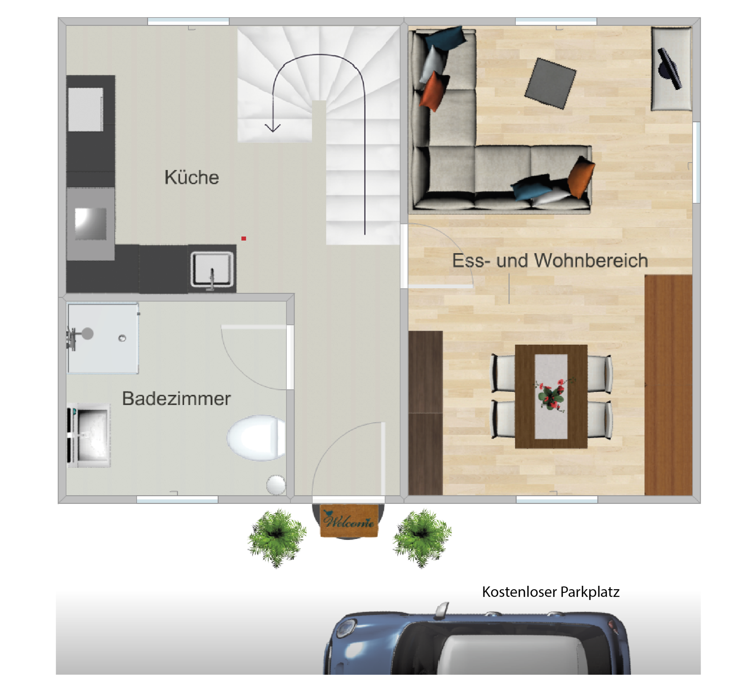 Wasser, Strom, Heizung und Müll sind, wenn nicht anders vereinbart im Mietpreis enthalten. Diese Kosten sind für einen Normalverbrauch berechnet, sollten diese überdurchschnittlich hoch liegen, hält der Vermieter sich eine Nachbelastung vor.Parkmöglichkeiten