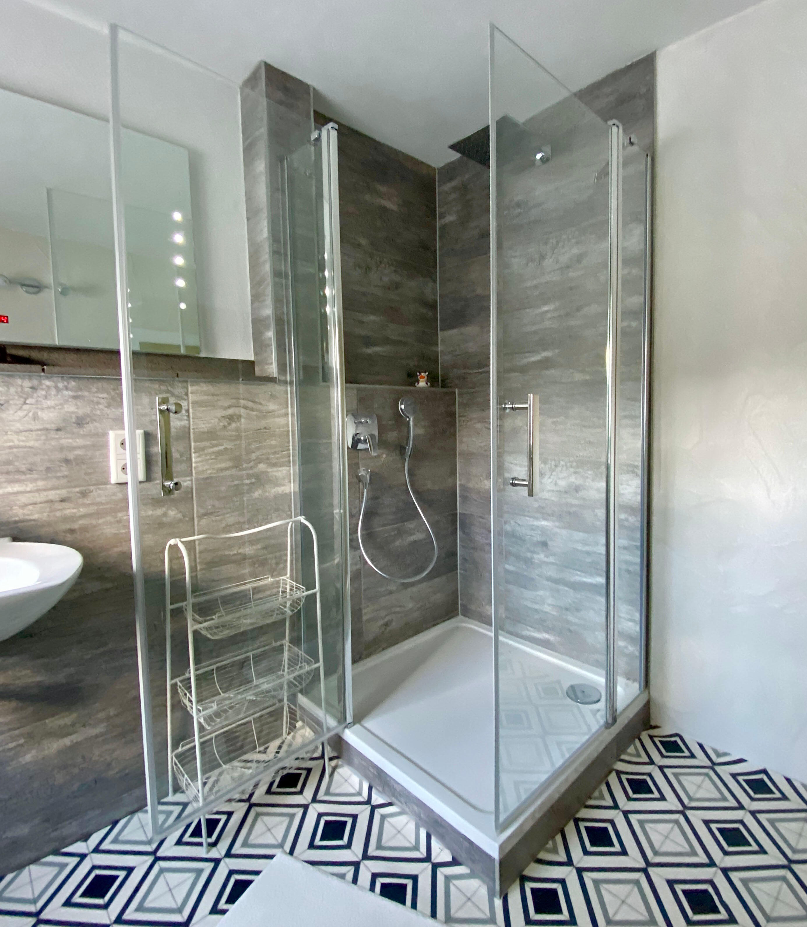 Wir bitten Sie, zur Vermeidung von KalkablagerungenFliesen/Glas der Dusche nach dem Duschen abzuziehen. Lassen Sie das Fenster und wenn möglich auch die Tür zum Lüften offen.